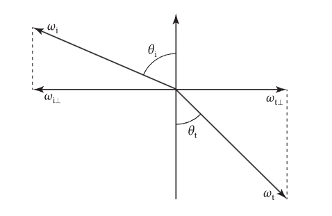 2. 通过反射定律和菲涅尔方程计算入射方向和反射能量系数。